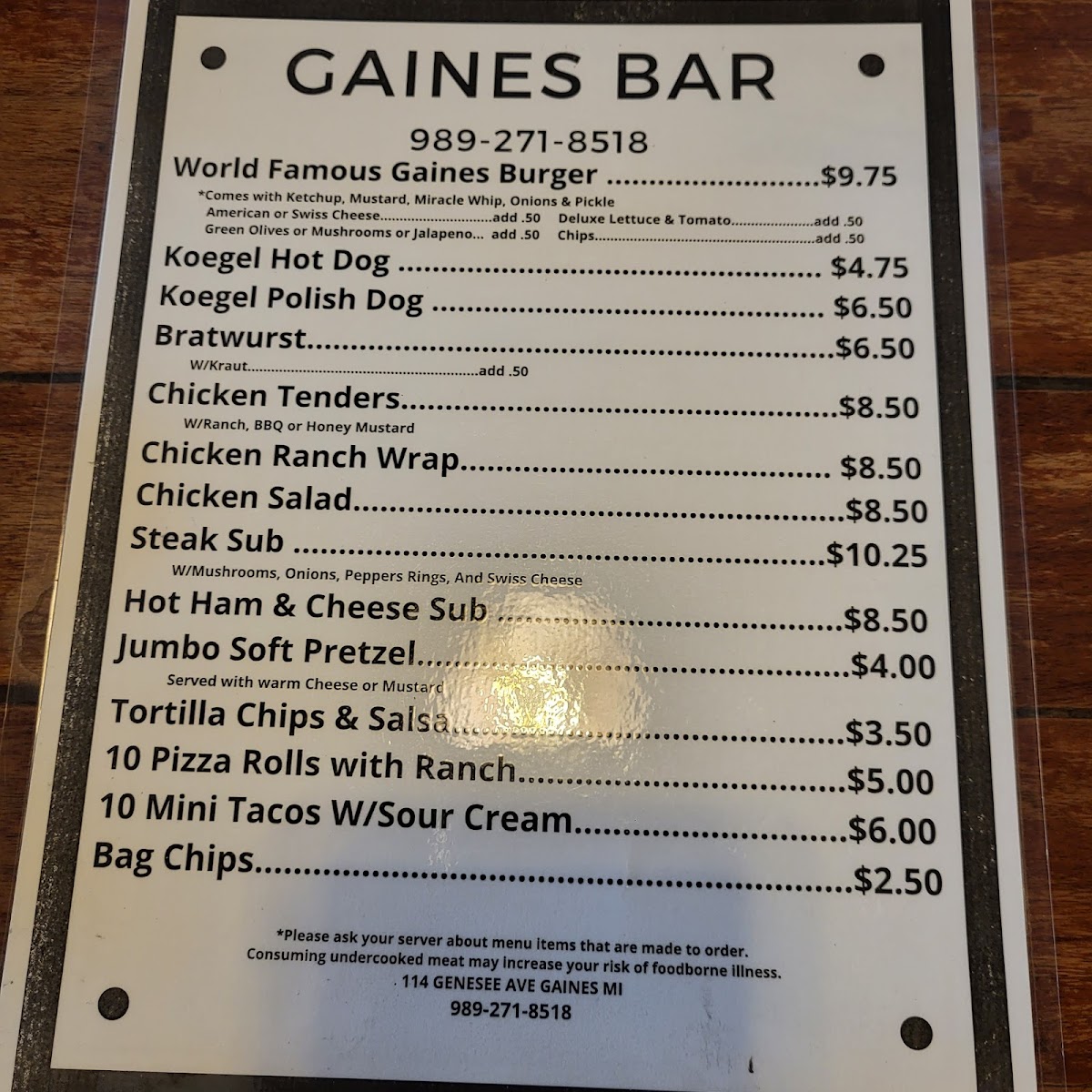 Welcome to Gaines Bar, a charming bar located at 114 Genesee Ave, Gaines, MI. This cozy spot has quickly become a local favorite, drawing patrons in with its warm atmosphere and exceptional offerings.